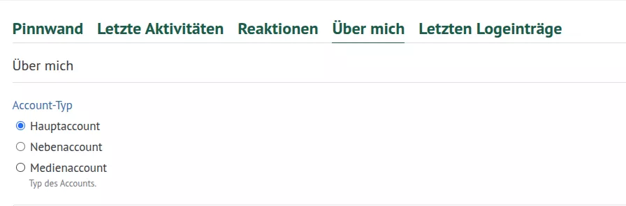 Der Typ des Accounts ist unter Profil bearbeiten offenzulegen.